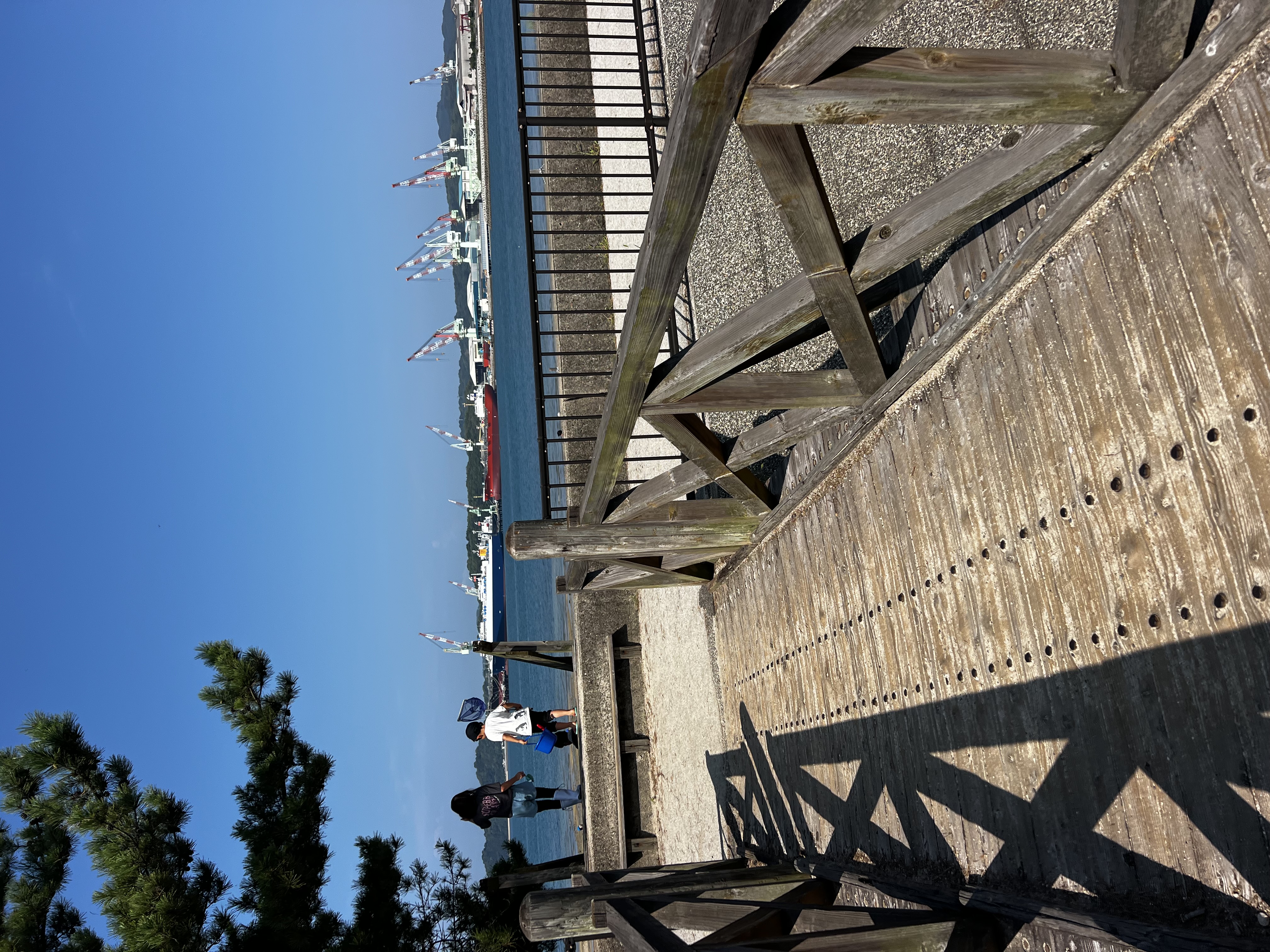 たくさん海遊びを楽しんだ後は、遊歩道から続くウッドデッキに洗い場があるので、海水でベタベタの手足を洗います。