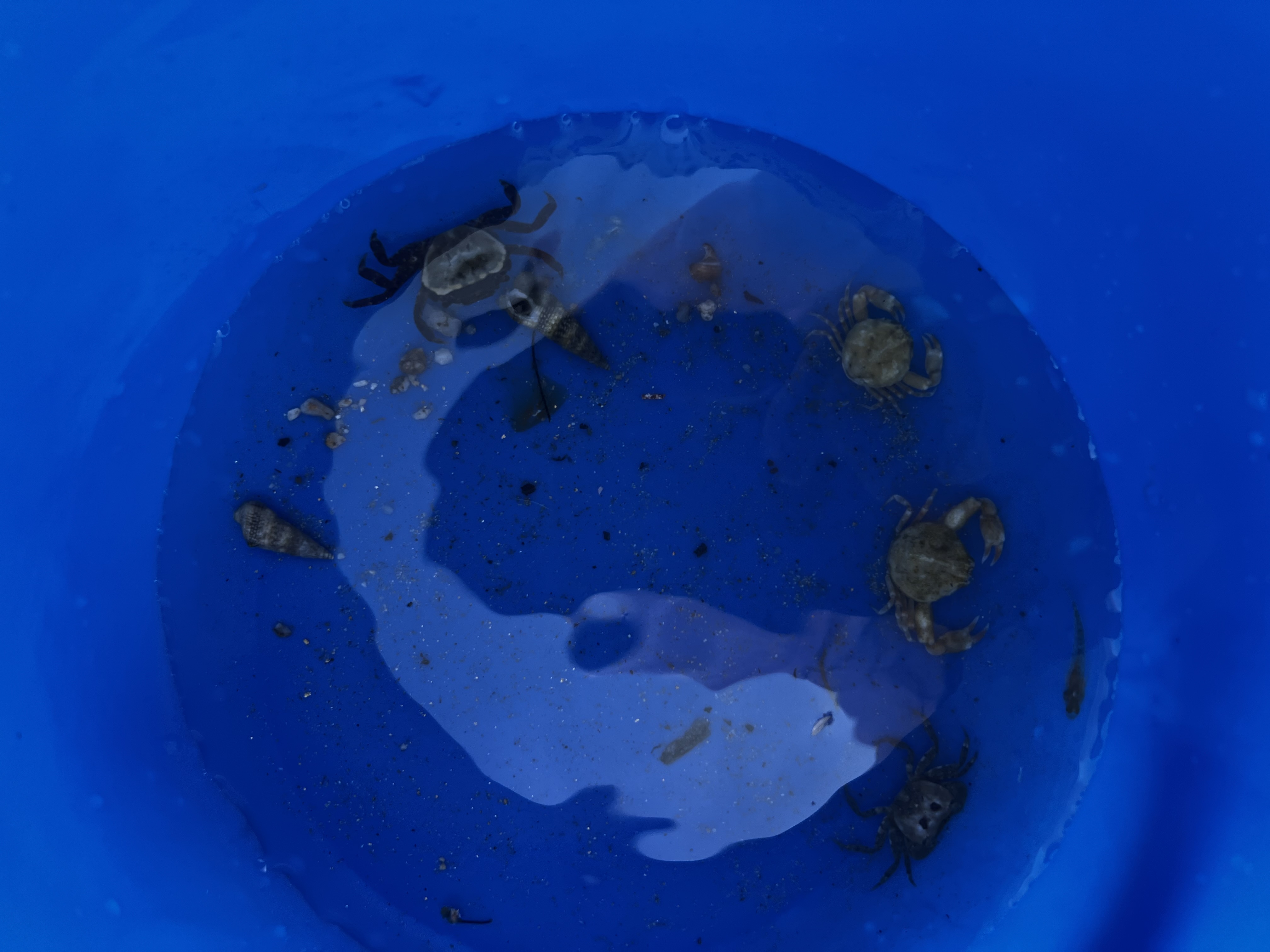そこでカニやお魚をのんびり捕まえて楽しむ息子。