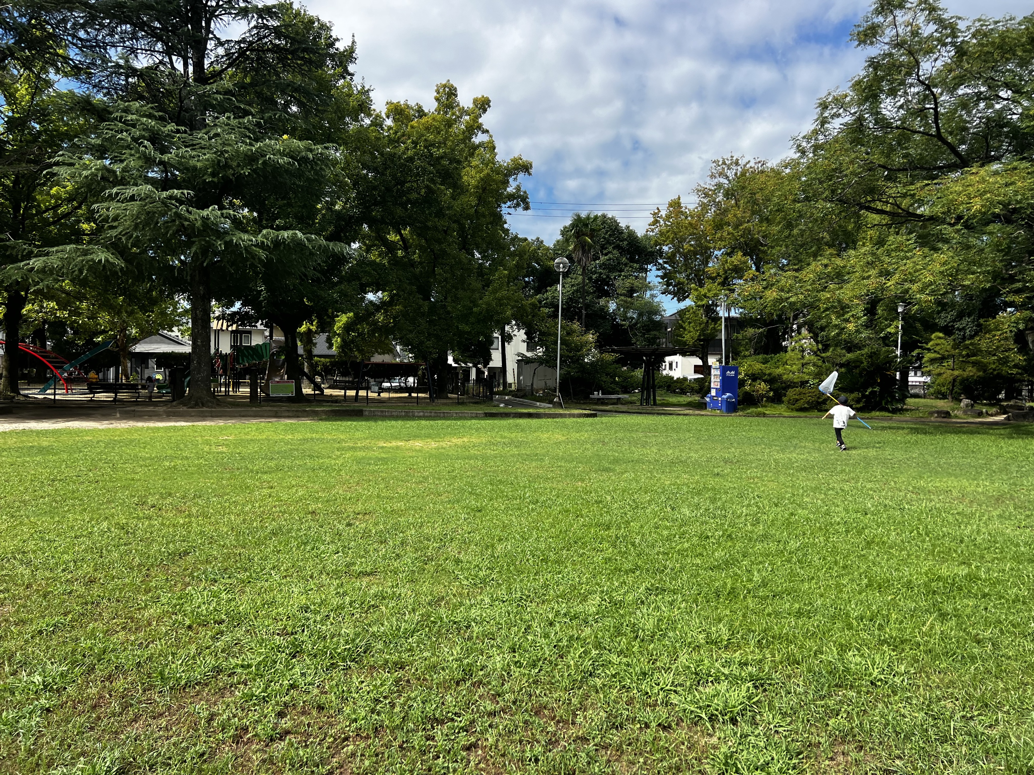緑に囲まれた公園なので、息子は遊具そっちのけで、芝生の中や、公園内で昆虫探しに夢中になっていました。
