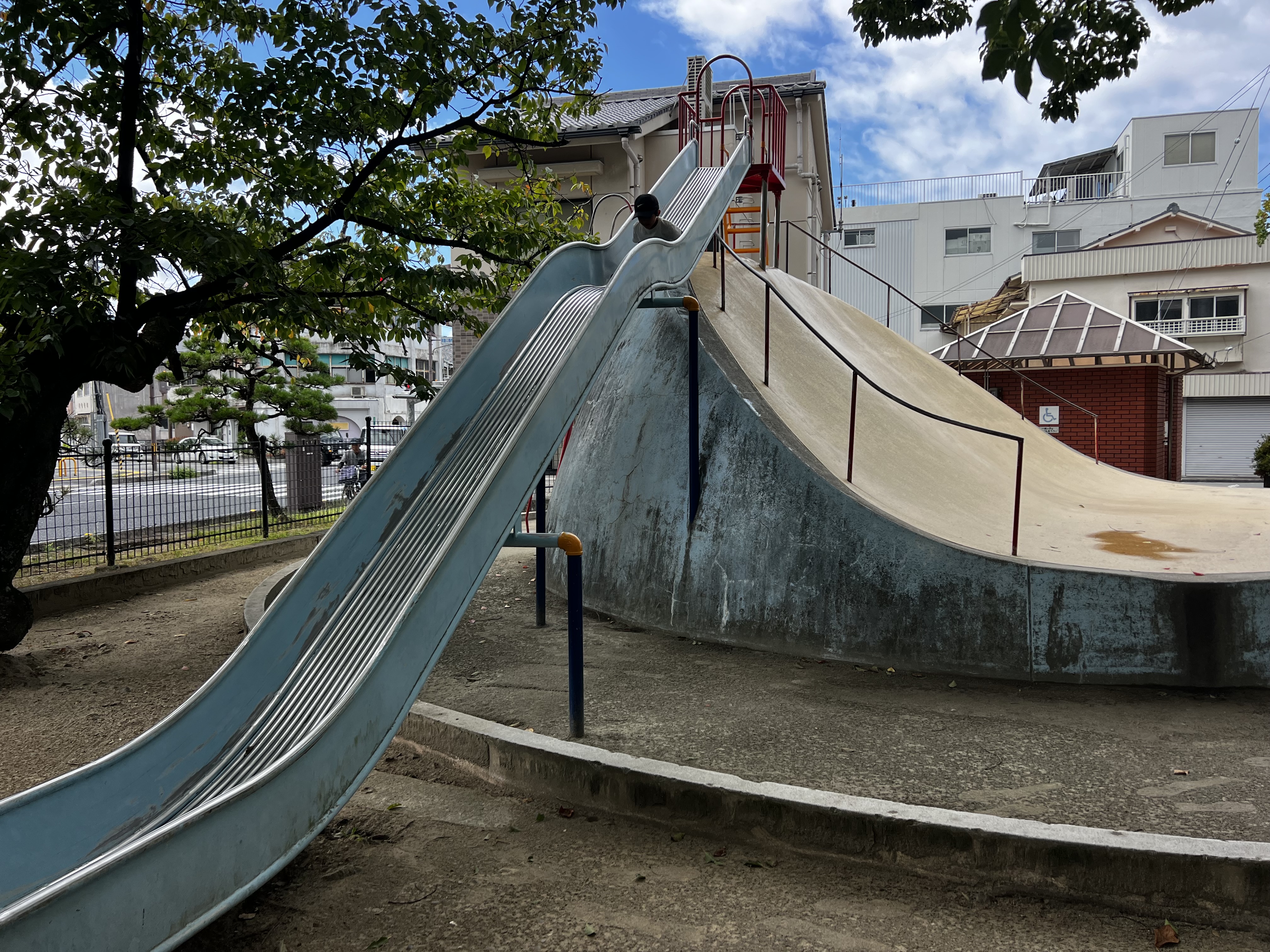 直ぐ横には、昔からあるんだろうなと思わせる石の滑り台。