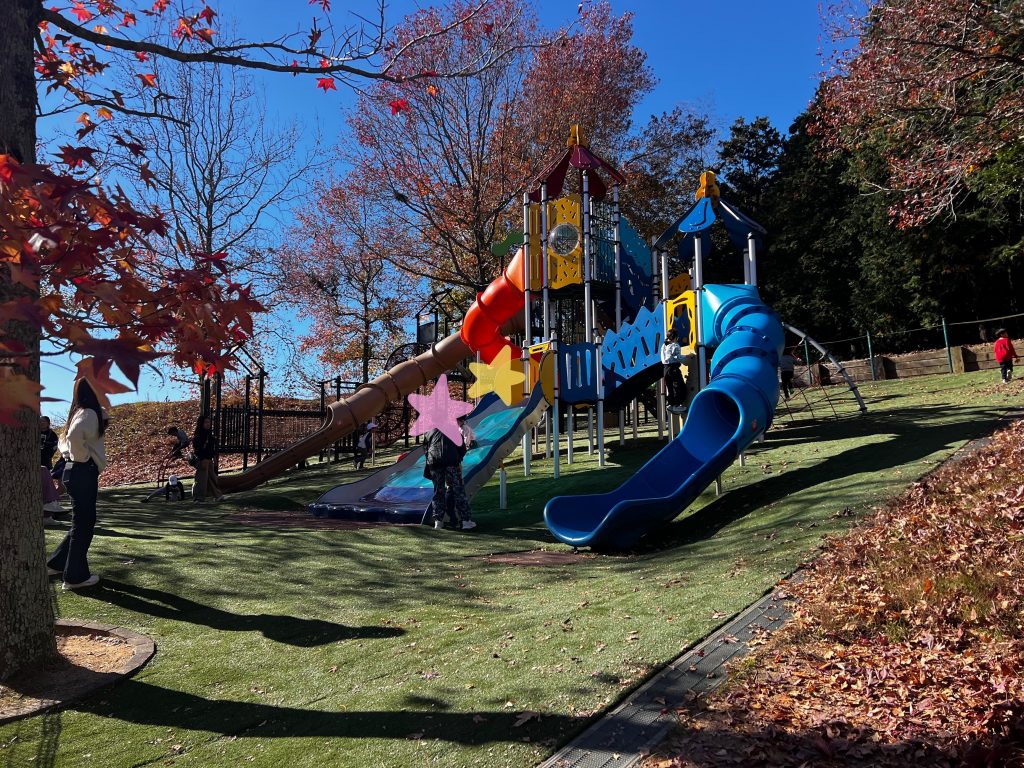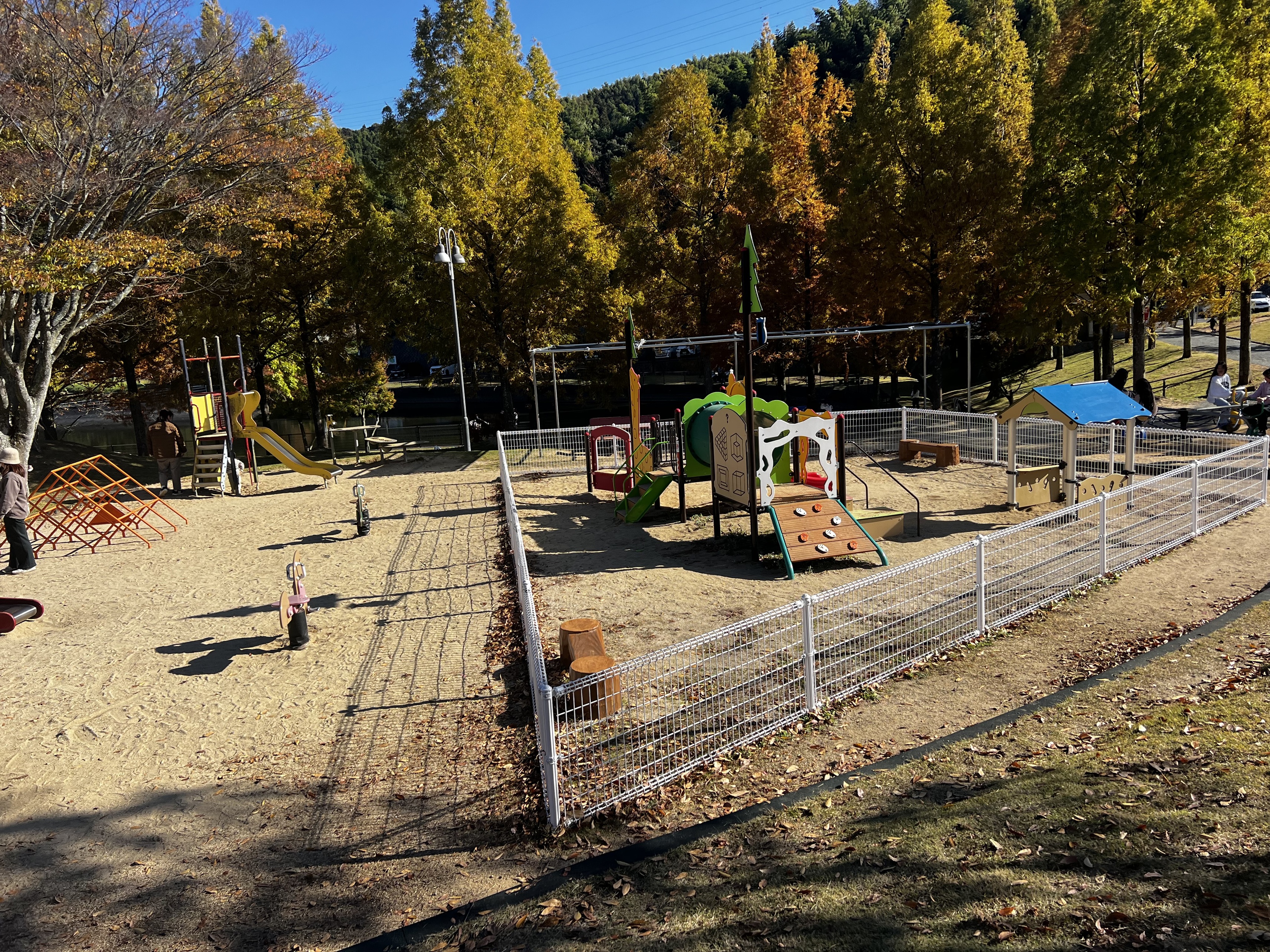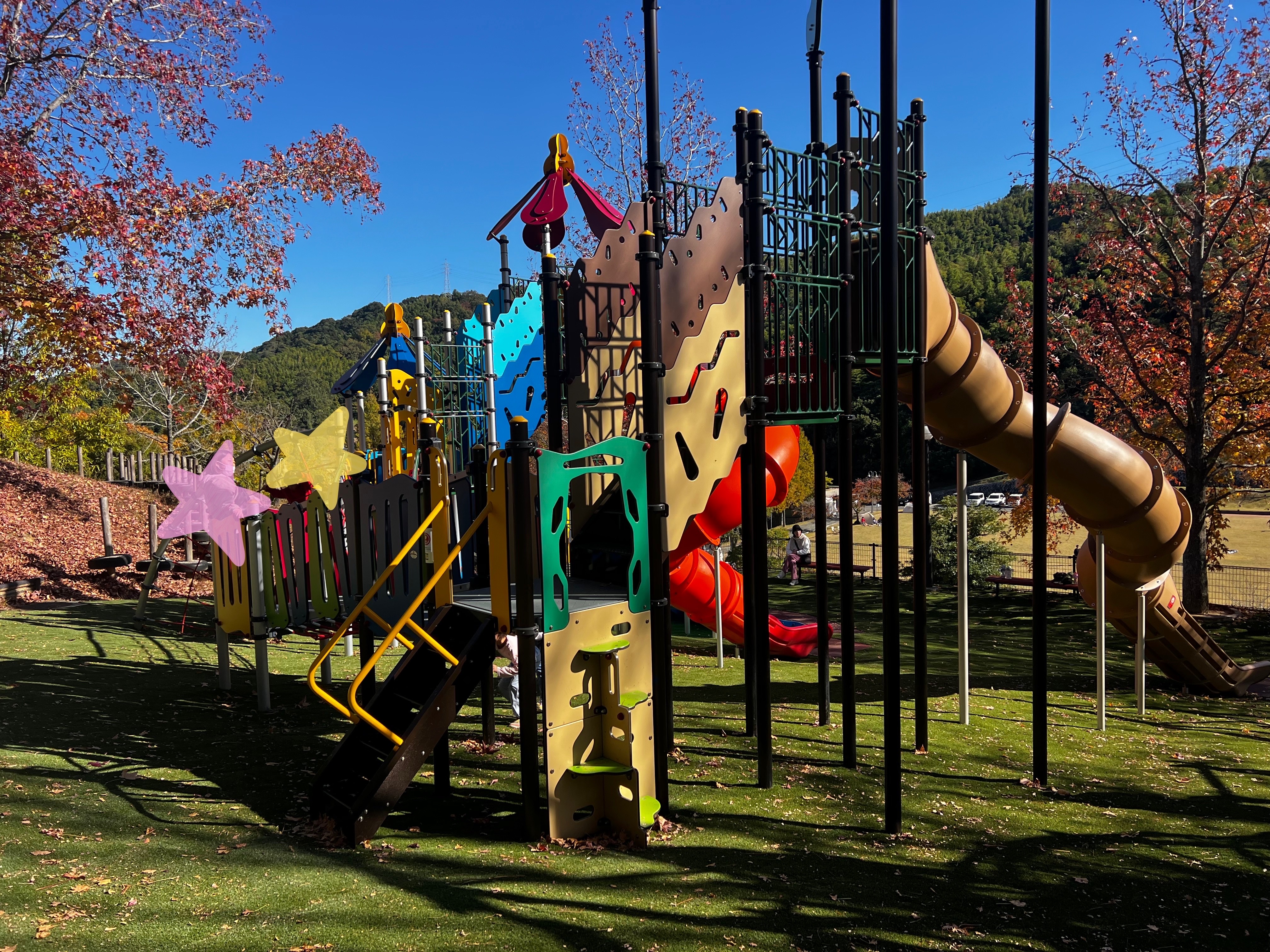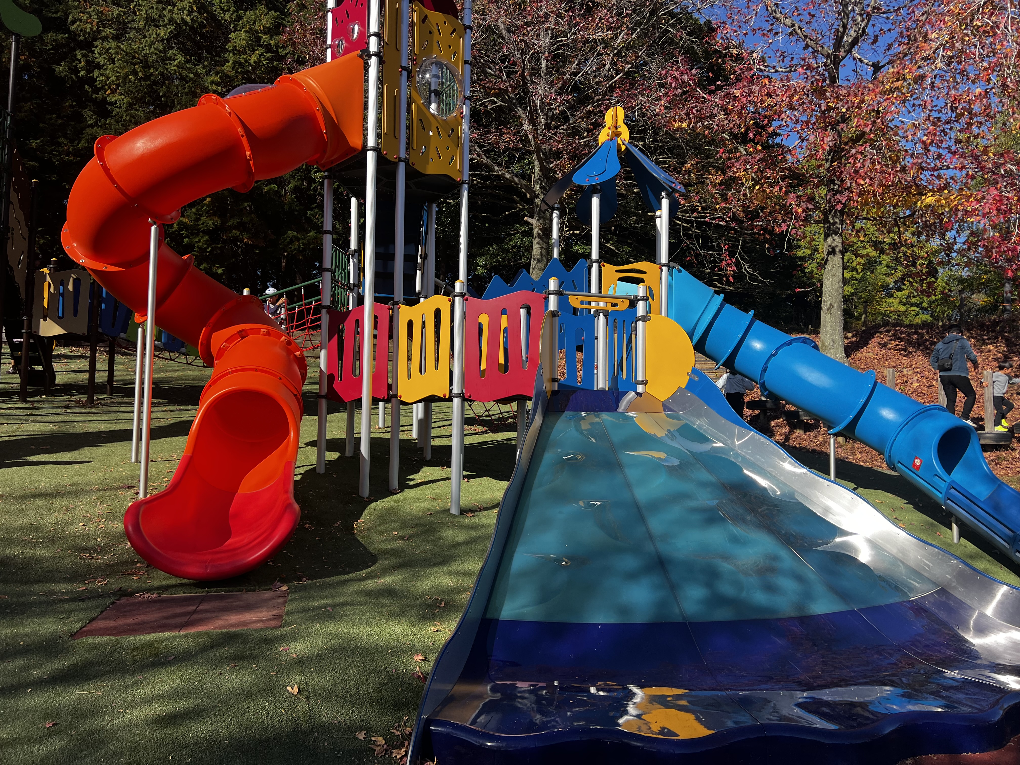 木々が紅葉しているなか、遠目でもカラフル遊具が目につきますね♪