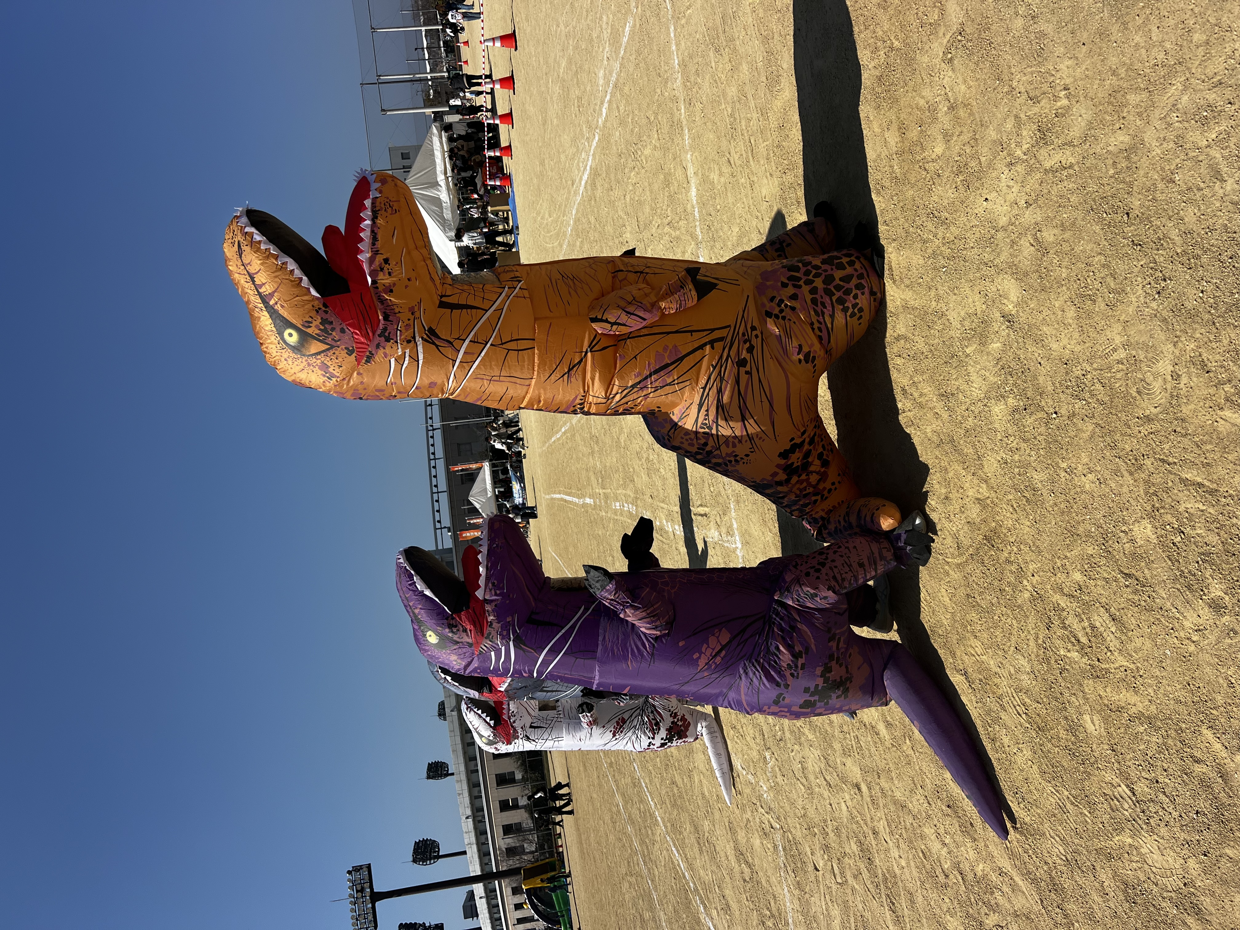 始めこそ参加に消極的だった娘ですが、恐竜を着せてもらうとノリノリで遊び始め、無事レースにも参加。