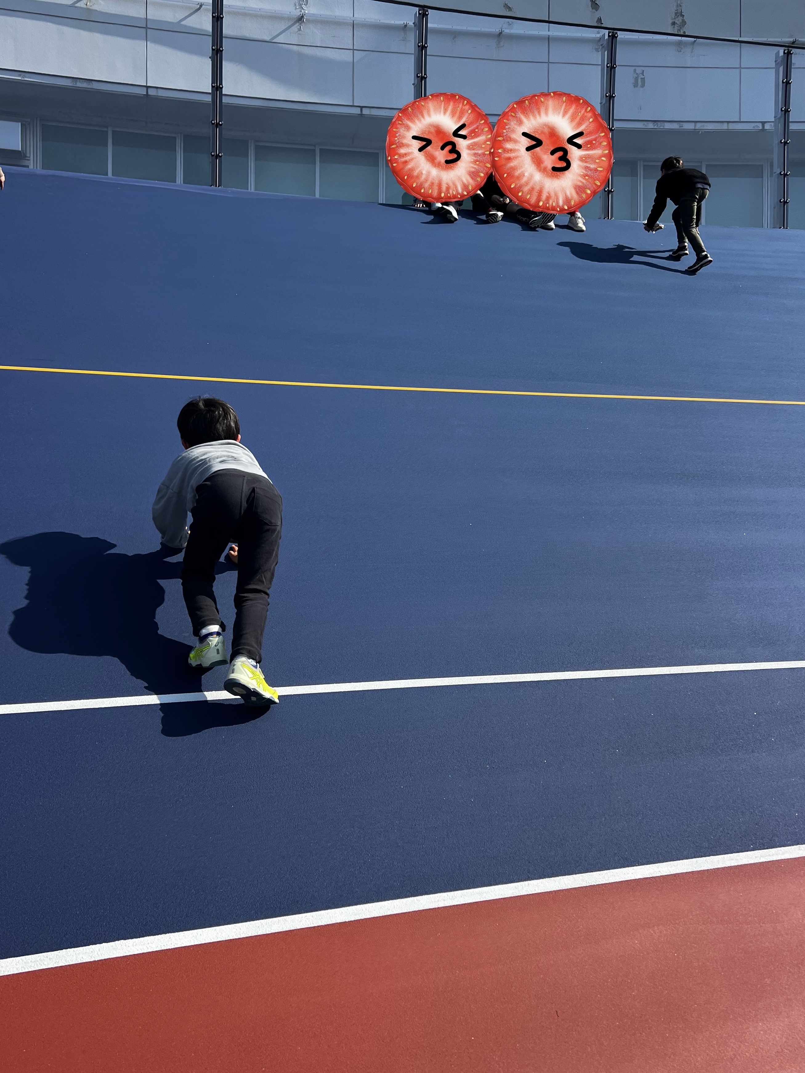 子どもたち真新しいバンクを駆け上がったり降りたり、普段絶対にできない体験を楽しんでいました。
